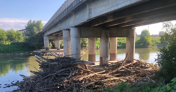 CANNETO-PIADENA (7 luglio 2020) - Già evidenziato lo scorso 24 marzo, è andato peggiorando il problema del legname trascinato dalla corrente e appoggiato ai piloni del ponte sul fiume Oglio tra Canneto sull’Oglio e Piadena Drizzona. I già numerosi detriti legnosi, tra rami e tronchi, incagliati in grande quantità, in particolare, contro il pilone più vicino al territorio piadenese, in tre mesi e mezzo sono aumentati. Rami e tronchi che, oggettivamente, in genere non provocano guai particolari, anche se va ricordato quanto avvenne il 22 luglio 2010 a Calvatone. In seguito ad un incendio doloso dei materiali legnosi che si erano affastellati contro uno dei piloni, il secolare ponte in ferro che collega Calvatone ad Acquanegra sul Chiese fu chiuso alla circolazione stradale sino al primo agosto.