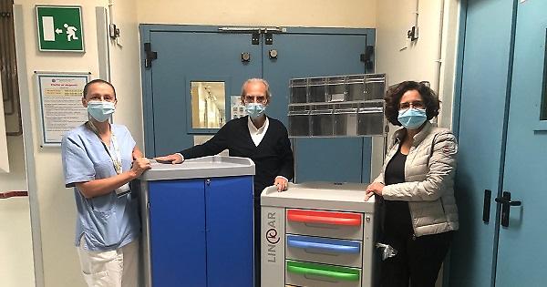 ASOLA (29 settembre 2020) - Grazie alla somma raccolta durante il lockdown attraverso donazioni private, il presidente dell'associazione Amici dell'Ospedale di Asola Stefano Sardini ha consegnato oggi a Chiara Bottura, direttore della Pediatria di Asola, due strumenti importanti per l'attività quotidiana del reparto. Si tratta di due carrelli: uno per la distribuzione dei farmaci ai bambini, dotato di settori ben distinti per il posizionamento e la conservazione dei vari tipi di farmaco, e l'altro per la distribuzione della biancheria pulita, di particolare rilievo in questo periodo di emergenza Covid. Erano presenti alla consegna anche Angela Solazzi, dirigente medico della pediatria, e Daniela Bozzoli, coordinatrice dello stesso reparto.