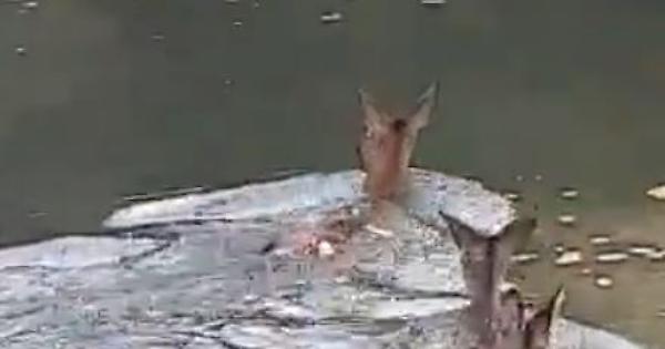 POMPONESCO (3 marzo 2021) - Le riprese sono state effettuate da Giuliano Landini, il comandante e comproprietario della motonave Stradivari. Landini, questa mattina in ricognizione sul fiume Po sulla barca dei meatori fra Viadana e Casalmaggiore, ha immortalato una famiglia di caprioli in traversata tra la sponda destra in località Gualtieri (Reggio Emilia) e quella sinistra in località Pomponesco (Mantova). Davvero spettacolare la scena.