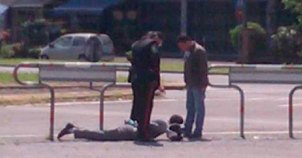 Il momento dell'arresto (foto da telefono cellulare)