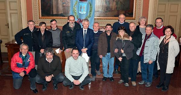 Il gruppo di protezione civile con gli amministratori comunali (foto Osti)