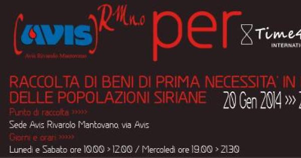 RIVAROLO MANTOVANO – L'Avis di Rivarolo a fianco delle popolazioni della Siria oppresse dalla guerra. La sezione rivarolese ha deciso di aderire all'iniziativa dall’associazione internazionale Time4Life, gruppo nato grazie alla tenacia e alla sensibilità di Elisa Fangareggi, 32 anni, avvocato di Modena. La donna ha instaurato una forte amicizia con Firas, un giovane fuggito con la sua famiglia da Aleppo, in Siria, nel marzo del 2011, che le chiese aiuto per soccorrere gli amici e i familiari rimasti in patria, vittime del conflitto scoppiato tra Assad e le forze di opposizione al regime. L’aiuto ben presto si concretizza nella raccolta di medicinali, latte in polvere, cibo e beni di prima necessità destinati in particolare ai bambini. Da allora i viaggi si ripetono con regolarità, una o due volte al mese, fino a diventare una vera e propria missione. Fino a sabato 22 febbraio (il lunedì e il sabato dalle 10 alle 12 e il mercoledì dalle 19 alle 21.30) la sede Avis di Rivarolo diventerà il punto di raccolta di questi beni che chiunque potrà donare per la causa. Allo scadere del periodo, tutto il materiale sarà consegnato al centro di raccolta di Modena. Il materiale da consegnare sono medicinali, cibo senza alcol, maiale o in contenitori di vetro, sacchi a pelo, coperte, prodotti per l'igiene e piccoli giocattoli.