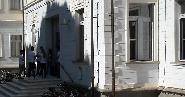 Utenti davanti all'ingresso della biblioteca di Viadana