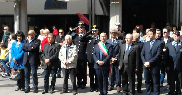 Tanti cittadini alla cerimonia. Il sindaco Giorgio Penazzi: "Libertà bene da difendere". Apprezzamento per il corpo bandistico 'Grossi' che ha accompagnato il corteo