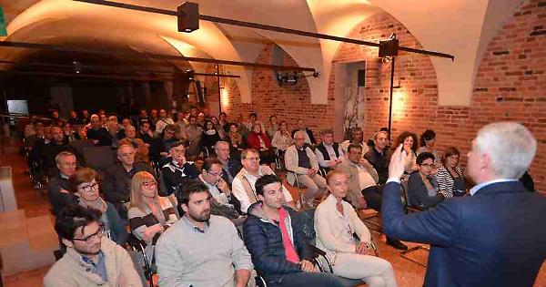 Claudio Silla (di spalle) nell'auditorium dell'oratorio Maffei