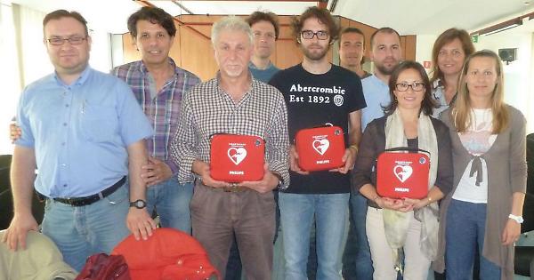 VIADANA — La palestra del Liceo sarà dotata di un defibrillatore, consegnato all’Istituto Sanfelice durante una cerimonia che si è svolta nella filiale centrale di Banca Intesa Sanpaolo a Bergamo. L’importante ausilio medico di emergenza è stato ottenuto dalla scuola sfruttando la vendita di 88 sacchetti di noci proposta dall’istituto bancario nell’ambito del ‘Progetto cuore’, e grazie alla sensibilità e alla generosità di alcuni docenti, non docenti e famiglie degli alunni delle classi 1Bs, 2Bs e 3Bs del Liceo. «Il defibrillatore sarà a disposizione la mattina della scuola e al pomeriggio e sera degli atleti delle società sportive», spiega il dirigente Mariateresa Barzoni. A tale proposito è stato organizzato un corso di formazione: sono abilitati all’utilizzo del defibrillatore i professori Carlo Lodi Rizzini e Gabriele Davolio, il tecnico Giuseppe Guarino e il collaboratore scolastico Daniele Busi.