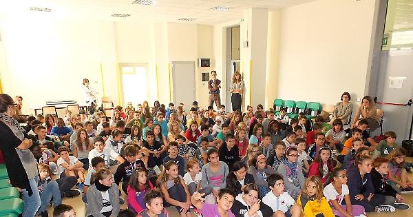Tutti i ragazzi e le ragazze delle scuole medie in aula magna
