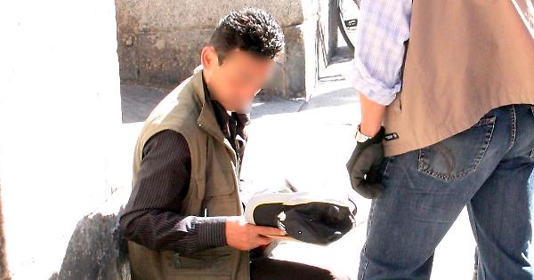 Un uomo chiede l'elemosina