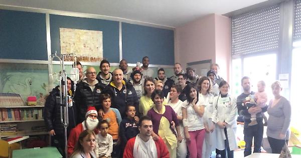 CREMONA - La Vanoli, nella mattinata di venerdì 19 dicembre, si è recata all’ospedale Maggiore nel reparto di pediatria per consegnare i peluche raccolti domenica scorsa in occasione della sfida contro Pesaro. Presenti tutti i giocatori, lo staff tecnico e il general manager Andrea Conti. Il capitano Luca Vitali si è presentato vestito da Babbo Natale e ha consegnato i regali ai bimbi. Un momento decisamente emozionante che ha fatto felici gli ospiti del reparto.