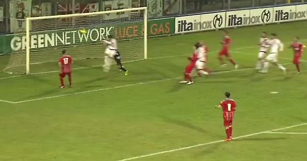 Il colpo di testa di Siniscalchi in Cremonese Mantova
