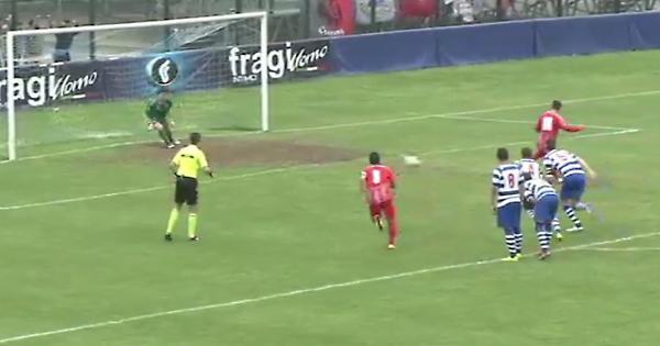 Il rigore trasformato da Serafini (Pro Patria) contro la Cremonese
