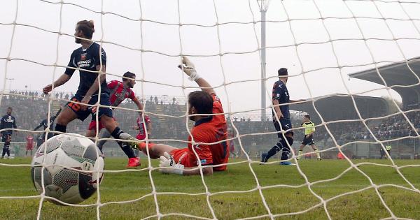 Il gol del 2-0 realizzato da Brighenti contro la Pistoiese