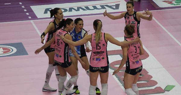 1 set - il cambio palla tradisce la Pomì in avvio con Cruz che scava il primo solco sensibile per il 3-0 ospite propiziato da Meijners ma la Pomì riordina presto le idee, torna a contatto (8-9) e mette la freccia con il servizio di Guerra che prima con l'ace e poi con la ricezione negativa permette a Casalmaggiore di portarsi avanti. Se la ricezione fatica a contenere il servizio toscano allo stesso modo la battuta della Pomì, specie con i battitori al salto, mette in difficoltà la seconda linea orchestrata da Merlo e ancora con Guerra scrive il break del 20-18. Caprara ferma i giochi dopo il contrattacco di Meijners per il 20-20 ma al rientro Stevanovic ci mette la difesa su Meijners e l'ace del 23-20. Sembra fatta con l'errore di Arrighetti del 24-20 e invece la Pomì pasticcia passando nuovamente da Caprara per il 24-23 che anticipa la parallela vincente di Bosetti che chiude il primo set.