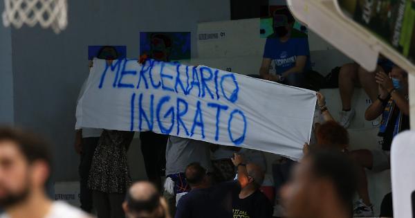 CREMONA (14 settembre 2020) - Costa caro lo striscione con la scritta "Mercenario ingrato" esposto dai tifosi durante la presentazione delle squadre in occasione del match di Supercoppa di basket tra la Vanoli e la Fortitudo Bologna. Scritta indirizzata all'ex tecnico biancoblu Meo Sacchetti. La Vanoli dovrà infatti pagare una ammenda di 750 euro per "esposizione di striscione offensivo".