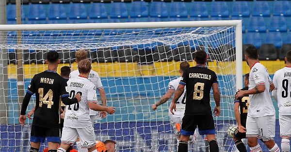 41' GOL DELLA CREMONESE - Splendida punizione di Buonaiuto dal vertice sinistro dell'area: palla sotto l'incrocio
