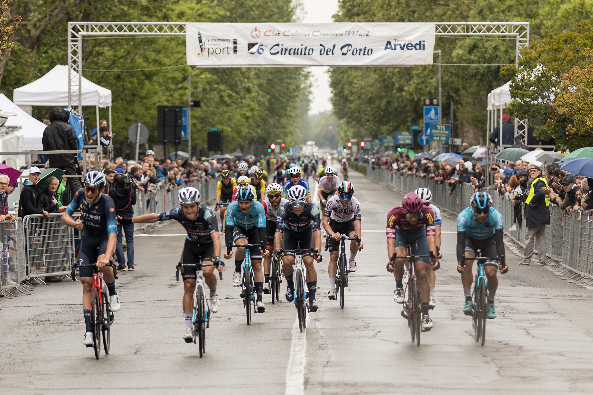 CREMONA - Capolavoro di Mattia Pinazzi al 56° Circuito del Porto Internazionale Trofeo Arvedi. Uno splendido stato di forma e una perfetta lettura nei metri conclusivi sul rettilineo di viale Po hanno consentito al velocista di conquistare una storica vittoria. Uno sprint magistrale che ha portato l’Arvedi Cycling sul gradino più alto del podio nella gara di casa ed è stata grande festa per la società cremonese. Un trionfo arrivato tra due ali entusiaste di pubblico, nonostante un finale sotto la pioggia. Anche quest'anno è stato un bel colpo d'occhio la cornice riservata alla tradizionale corsa organizzata dal Cc Cremonese 1891 e riservata a Elite e Under23. Pinazzi ha preceduto Davide Persico della Colpack: i due corridori si sono scambiati le posizioni dell’edizione precedente. Sul terzo gradino del podio è salito Nicolas Dalla Valle del Team Corratec. La corsa ha visto a lungo una fuga di un sestetto di corridori, diventati poi quattro protagonisti al comando. A due giri dal termine ha provato da solo lo sloveno Matic Zumer della Meblojogi Pro Concrete. Il gruppo ha però recuperato e a due chilometri dal traguardo l’azione è stata annullata e la gara si è decisa in volata. Uno sprint in cui Pinazzi ha posto la sua firma per la festa dell’Arvedi Cycling.