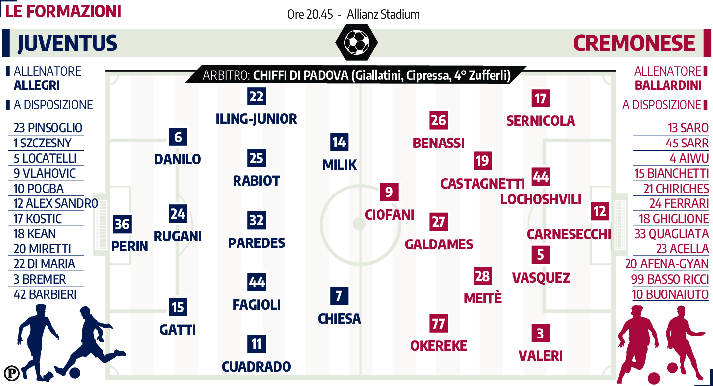 Anche la Juventus ha buonissime ragioni per cercare il risultato pieno. Attende che la giustizia sportiva riformuli la propria sentenza e da seconda in classifica vuole tenere saldamente in pugno una posizione utile per conquistare la partecipazione alla prossima Champions League. Attende soprattutto i gol di Vlahovic che finora ha reso meno rispetto alle aspettative. Sarà anche un duello a distanza fra il giovane Dusan e l’esperto Daniel Ciofani: DV9 contro DC9. Il primo ha segnato tre reti in più rispetto all’esperto giocatore grigiorosso che ha dato una mano non indifferente alla Cremonese per tenerla a galla il più possibile.
