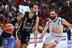 Ike Anigbogu a canestro nella sfida contro Napoli. A fianco, Billy Garrett in penetrazione