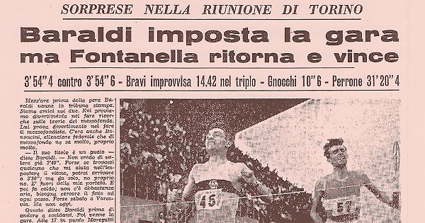 L’articolo di Tuttosport con la fotografia della spettacolare vittoria di Fontanella nel 1956 a Torino