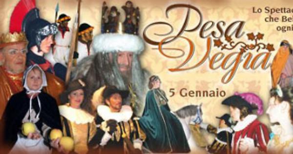 La Pesa Vegia è un appuntamento immancabile delle festività natalizie, una manifestazione con alle spalle oltre 400 anni di storia che ogni anno il 5 Gennaio si ripresenta ai suoi visitatori rinnovandosi e insieme mantenendo immutate leggenda e magia. Molte sono le leggende e le ipotesi sorte negli anni intorno alla nascita di questa ultracentenaria manifestazione. Dal lavoro di ricerca svolto recentemente da Antonio Rusconi viene documentata come più verosimile una datazione intorno al 1605, anno in cui vi fu un’emanazione di una grida, a cura del Governatore Pedro Acevedo, Conte di Fuentes, che annullava una precedente sua riforma del 1604 e ripristinava in uso le vecchie unità di misura (da qui il nome Pesa Vegia).