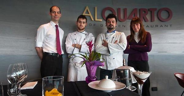 Sull’ascensore che li ha portati al quarto piano dell’Hotel Continental di Cremona sono saliti senza timori reverenziali. Affrontano consapevolmente un’avventura impegnativa ma ricca di stimoli straordinari, Laura Morelli e Carlo Bertolotti che dal 3 marzo gestiscono ALQU4RTO, roof garden restaurant del rinnovato, storico albergo di piazza Libertà. Sono giovani e pieni di entusiasmo, un’attitudine che condividono con lo chef Michele Barezzi e l’aiuto Andrea Regonati. E’ lo staff under 40 che ha fatto un deciso salto di qualità nell’affiancare alla gestione del Tacabanda di piazza IV Novembre quella dell’esclusivo ristorante con vista panoramica sulla città che la famiglia Lacchini ha voluto all’ultimo piano dell’hotel riaperto nel settembre 2011. Il menu si ispira al territorio ma con elaborazioni imposte dalla raffinatezza e dall’esclusività dell’ambiente. «La nostra proposta è al crocevia fra tradizione e contemporaneità—spiegano Morelli e Regonati —.Diamo spazio a una sperimentazione all’insegna dell’armonia e dell’equilibrio». I piatti gustati ALQURTO sorprendono senza disorientare. E sono accompagnati da vini selezionaati con attenzione alla naturalità e al biologico. Ai quaranta coperti dell’unica sala se ne aggiungono altrettanti sulla terrazza con vista mozzafiato sulla centro storico nella bella stagione. Tra gli antipasti abbiamo apprezzato una sfiziosa tartare di manzo con cuore croccante su biscotto salato al salva cremasco, l’uovo in cocotte di pancetta dolce con gocce di tartufo e fonduta di puzzone di Moena, il polpo con patate e fagiolini alla pancetta affumicata e olive taggiasche. Ottimi i primi, dal risotto mantecato all’Auricchio stravecchio, pepe di Sichuan, timo e zucca caramellata, agli gnocchi di patate e ricotta con pancetta affumicata croccante e menta fresca su emulsioni di pomodoro e basilico, ai tortelli al nero con cuore di burrata pugliese saltati con burro allo zenzero, limone e vongole veraci. Per secondo, filetto di maialino lardellato con marmellata di mele al rosmarino e zenzero e polenta abbrustolita. Infine un’imperdibile degustazione di dolci: tortino con crema al gianduia, semifreddo al torrone, meringa in coppa con salsa al cioccolato. ALQU4RTOpresto proporrà un brunch domenicale. Ben calibrata la carta dei vini.