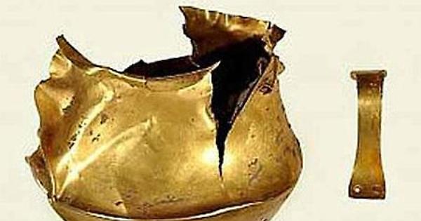 È alta poco più di 12 cm, ha un manico delizioso e soprattutto è in oro pressoché purissimo. Già questo farebbe della tazza rinvenuta nel marzo 2012 a Montecchio Emilia (RE) un reperto straordinario. Ma se si pensa che risale all’età del Bronzo Antico, cioè a un periodo compreso tra i 3800 e i 3700 anni fa, e che ha pochissimi confronti nel mondo, e nessuno in Italia, ecco che ‘eccezionale’ diventa il termine più appropriato.