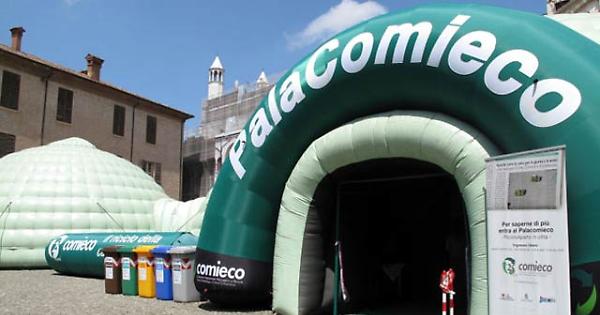 Arriva a Crema, in Piazza Aldo Moro, il PalaComieco, la struttura itinerante che porta in piazza il ciclo del riciclo di carta e cartone.