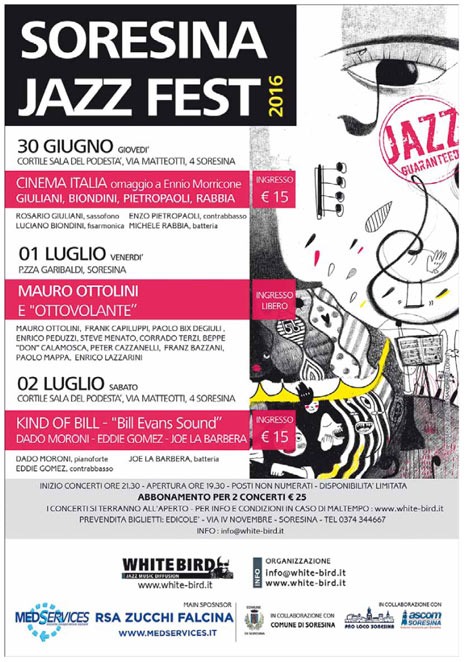 La sera seguente, il primo luglio, il festival fa tappa in piazza Garibaldi per lo show di Mauro Ottolini e il suo ‘ottovolante’, mentre l’ultima delle quattro puntate della manifestazione è in programma il 2 luglio nel cortile della sala del Podestà. In scena il trio Dado Moroni (pianoforte), Eddie Gomez (contrabbasso) e Joe La Barbera (batteria). Ingresso: 15 euro. Organizzano ‘White bird’in collaborazione con Comune, Ascom e Pro loco.
