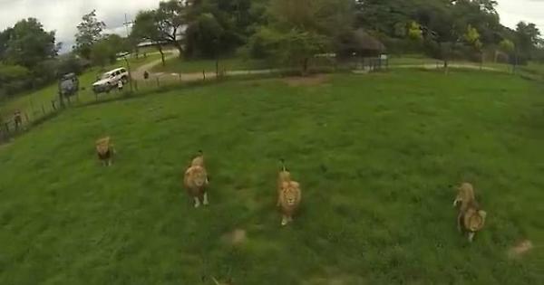 È precipitato proprio dove nessuno vorrebbe mai trovarsi. Nel bel mezzo di un branco di leoni, anche se in cattività. Per fortuna a finire tra le fauci dei curiosi (e affamati) ospiti dell'Antelope Park, in Zimbabwe è stato un drone con camera a bordo. Nonostante l'urto contro l'albero, la GoPro ha continuato a registrare anche da terra. Possiamo vedere così in soggettiva i denti e le mandibole dei leoni che tentavano di sgranocchiarla. Il sapore non doveva essere però dei migliori, infatti dopo alcuni tentativi di masticarla, hanno rinunciato al pasto. Tutto questo sotto gli occhi di James e Mira Raley, coppia appassionata di viaggi che tentava di cogliere alcune immagini mozzafiato molto, forse anche troppo, ravvicinate, e che hanno assistito impotenti alla scena prima di poter recuperare la loro attrezzatura