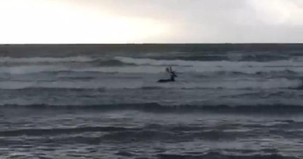 Non ha resistito al caldo dell'estate in Maremma e un daino si è tuffato nel mare davanti alla spiaggia della Feniglia all'Agentario.