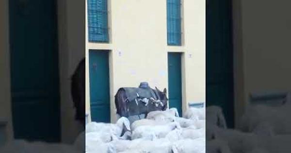 MOSCAZZANO (23 aprile 2019) - Transumanza di Pasquetta nel centro storico di Moscazzano. Suggestivo il passaggio delle pecore, questa mattina, per la via principale del paese. L'asino che porta nelle sacche gli agnellini, il cane e il pastore che indirizzano il gregge, il lungo fiume bianco in direzione delle campagne. E le soste di pecore e agnelli a brucare le siepi che delimitano i parcheggi di piazza Aiserey. Una sorpresa che ha riportato indietro nel tempo, con un po' di magia.