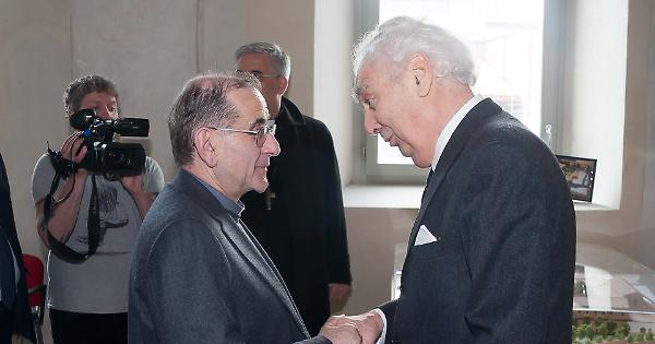 CREMONA (26 aprile 2019) - Il Campus di Santa Monica sta diventando realtà. Visita in cantiere con il cavalier Giovanni Arvedi, l’arcivescovo di Milano monsignor Mario Delpini, il vescovo di Cremona monsignor Antonio Napolioni, il presidente della Provincia Davide Viola e il sindaco Gianluca Galimberti.