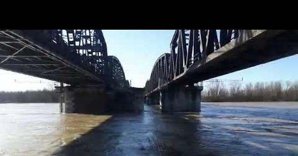 CREMONA (23 dicembre 2019) - Ore 11,30 di oggi la corrente del Po mentre sbatte contro i piloni del ponte che collega Cremona con il Piacentino. La Canalina è stata totalmente invasa dall'acqua che corre veloce a pochi metri dal culmine del Lungo Po Europa.