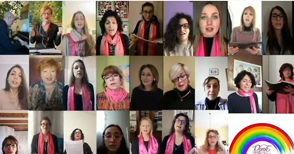 CREMONA (11 aprile 2020) - Distanti ma unite, incrociano le loro voci lungo la traiettoria melodica della preghiera in musica più celebre dei nostri tempi: le Pink Voices intonano le parole dell’Hallelujah di Leonard Cohen in un’interpretazione corale che, in questi giorni, ha il sapore della consolazione. Ognuna a casa propria, le cantanti dirette dal soprano Mimma D’Avossa si sono piazzate davanti ad una telecamera per dare voce all’arrangiamento del pianista Marco Somenzi. Le singole tracce audiovisive, dopo essere state mixate, sono quindi confluite in un filmato che merita di essere visto e rivisto, perché capace di emozionare profondamente. Sullo schermo, il coro virtuale si scompone in venticinque riquadri, tanti quanti gli interpreti che popolano la scena digitale. In basso a destra compare il logo del gruppo corale adattato ai tempi del Coronavirus, con il nome Pink Voices inscritto in un grande arcobaleno che suggerisce fiducia e positività. E che, sotto la sua parabola colorata, abbraccia quella stessa commistione di corpo e spirito, amore e mistica che scaturisce dai meravigliosi versi scritti da Cohen. Era il 1984 quando il cantautore di Montréal incise per la prima volta il suo «Lodate il Signore» – che attinge al più celebre dei Salmi, il Miserere – all’interno dell’album Various Positions. Quella preghiera, rimaneggiata dal suo stesso autore un’infinità di volte, è stata reinterpretata praticamente da chiunque. Ma ora, nel canto delle Pink Voices, si scopre più che mai inno alla vita e alla speranza.