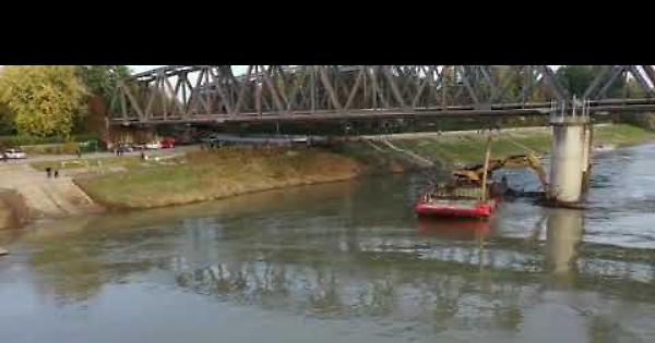 CREMONA (30 ottobre 2020) - Ecco le immagini, riprese dal drone, della rimozione della catasta di legna che, dopo la piena, si era incastrata sotto il ponte del Po.