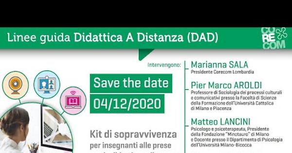 Le linee guida e la documentazione relativa alla didattica a distanza verranno poi pubblicate sul sito web del Corecom Lombardia (www.corecomlombardia.it)