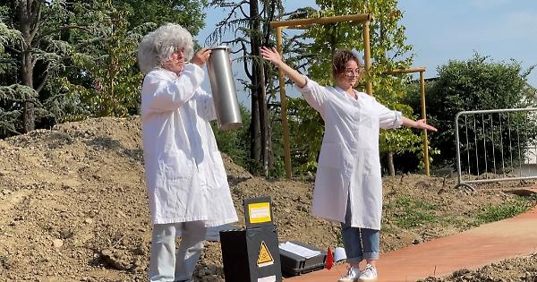 SAN GIOVANNI IN CROCE - Quando il personaggio di Miccia Cadmio, alias Rebecca Boturri, assistente del professor Promezio Berkelio (l’attore Alberto Branca), per mezzo di un video ha proposto ai bambini della scuola primaria di realizzare una capsula del tempo in cui immagazzinare disegni e pensieri, la risposta è stata entusiastica. Ieri pomeriggio l’attività si è conclusa in piazza Dante Alighieri, con l’interramento della capsula nei nuovi giardini pubblici. Solo nel 2050 il contenitore metallico potrà essere aperto. E chissà che cosa penserà, tra 29 anni, chi leggerà quei messaggi provenienti dal 2021.