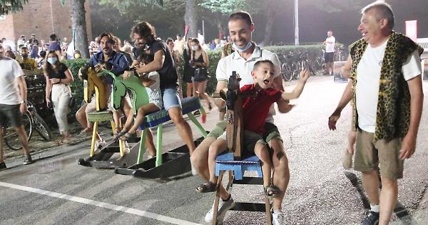 Alla sera, dopo l’apertura delle cucine e la cena col menù fisso, c’è stato spazio per una delle novità di questa edizione: la gara dei cavalli a dondolo. Ovvero una piccola dimostrazione di corsa nel quale i partecipanti hanno cercato di dondolarsi in avanti con il cavallo in legno.