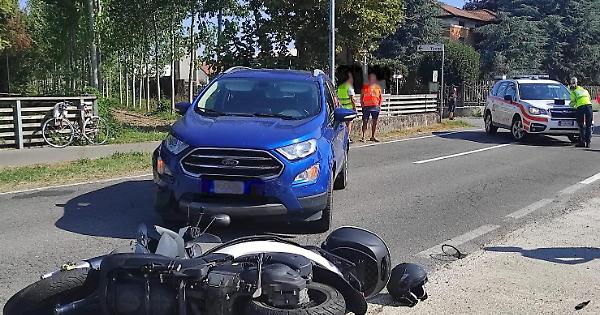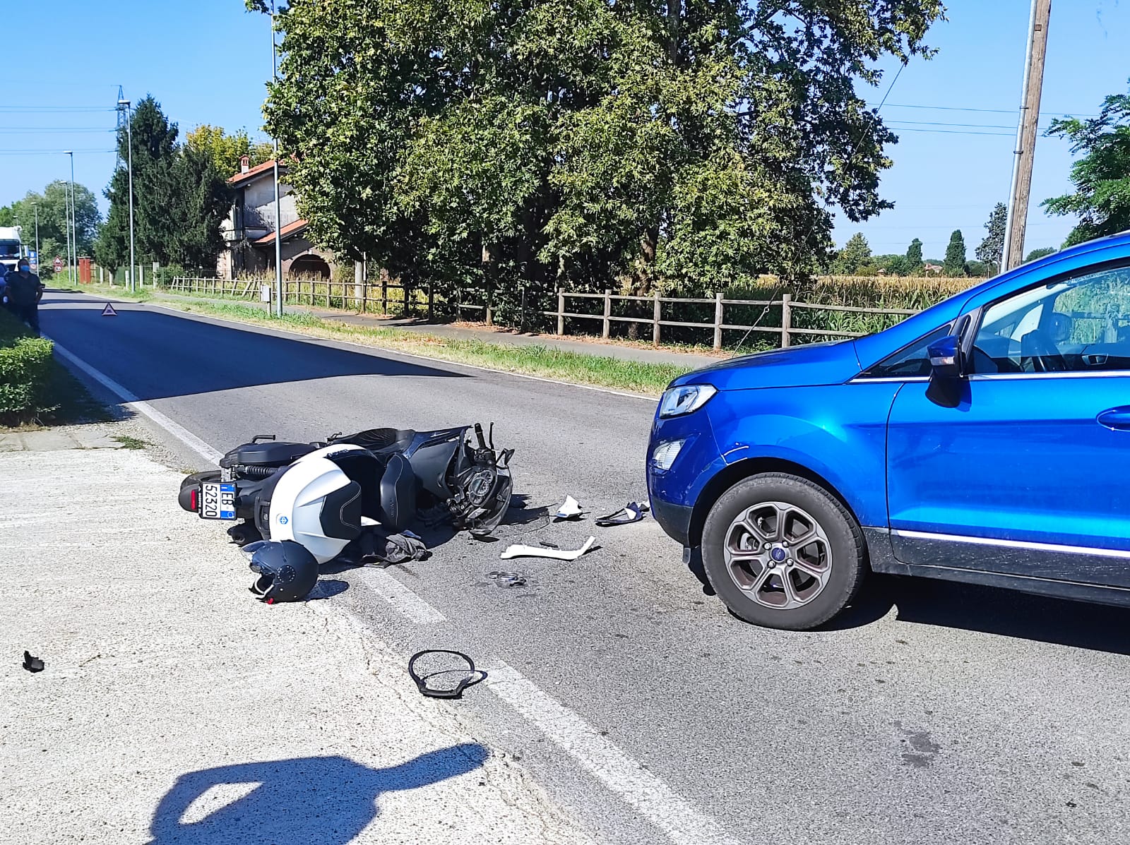 OFFANENGO - Se l'è cavata con ferite di media gravità (ricoverato all'ospedale di Crema in codice giallo) il centauro che a bordo del suo motociclo Piaggio Beverly si è scontrato con una macchina Ford EcoSport questa mattina poco dopo le 10 in via Brescia, proprio al confine tra i Comuni di Offanengo e Crema. Secondo alcuni testimoni, l'auto stava procedendo verso Crema, quando arrivata all'altezza della vecchia casa cantoniera si è preparata a girare vero una via interna; dalla parte opposta stava sopraggiungendo lo scooter che, vista la manovra del guidatore, ha iniziato a frenare. A seguito della frenata, il motociclo ha iniziato a sbandare, ha sfregato sull'asfalto ed è andato a sbattere contro la macchina. Sul posto sono giunti automedica, ambulanza e una pattuglia della polizia. Il traffico ha subito un forte rallentamento.