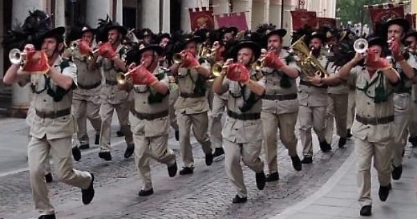 VIADANA - Diii-corsa! L'esibizione della fanfara dei bersaglieri 'Ghinzelli' di Viadana ha strappato gli applausi del pubblico radunato sugli spalti del campo sportivo comunale in occasione della festa 'Ripartiamo insieme', organizzata dall'Uc Viadana Calcio. Gli strumentisti piumati hanno percorso l'anello della pista di atletica, sfilando al suono delle tipiche melodie del Corpo. Il ricavato della manifestazione sarà devoluto in beneficenza.