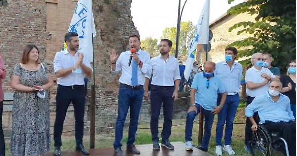 Poi l'attacco a "un tema che scalda i cuori a sinistra": il ddl Zan. Salvini ha detto: "Non si portano nelle scuole argomenti che non spettano allo Stato. L'educazione dei bimbi di 6 anni spetta solo alla mamma e al papà. Non permetto che qualcuno entri a scuola a decidere sulla pelle della mia figlia ciò che deve essere o non essere". In mezzo anche una frecciata a Fedez: "Una volta c'era Berlinguer che parlava agli operai, oggi c'è Fedez".