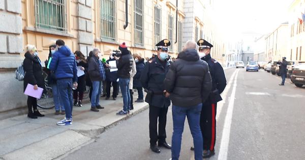 Il procuratore è fuori sede e ha dato disposizione di non fare entrare i rappresentanti del Movimento Fortitudo senza Green pass. La querela, del resto, deve essere presentata personalmente da ogni persona, cosa che non è possibile portare a compimento per la mancanza di certificazione verde.