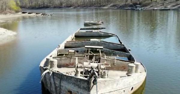 VIADANA - Il relitto di una nave affondata nella primavera del 1945 è riemerso in questi giorni nella cosiddetta Isola degli internati di fronte a Pomponesco. Le riprese con il drone sono del fotografo Alessio Bonin di Viadana, che ha raggiunto la zona a ridosso del Po per documentare una pagina di storia della Seconda guerra mondiale durante la ritirata dei tedeschi.