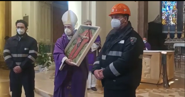 TERNI - Anche quest’anno la consueta messa di Pasqua per il personale di Acciai speciali Terni in duomo. Prima della celebrazione liturgica il presidente di Ast, Giovanni Arvedi, arrivato venerdì mattina in piazza Duomo poco dopo le 9 accompagnato per l’occasione dalla moglie, Luciana Buschini, e dall’amministratore delegato, Mario Caldonazzo, ha incontrato il vescovo della Diocesi di Terni, Narni e Amelia, Francesco Antonio Soddu.