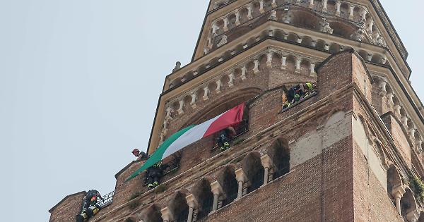La cerimonia, molto partecipata, si è conclusa con il gruppo S.A.F. dei Vigili del Fuoco che sulle note dell’Inno Nazionale, hanno eseguito lo ‘srotolamento’ di un lungo tricolore dalla sommità del Torrazzo.