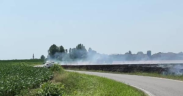 PIADENA DRIZZONA - Tempestivo ed efficace intervento dei vigili del fuoco del distaccamento volontari di Piadena Drizzona per un incendio che si è sviluppato poco dopo mezzogiorno in un terreno posto tra Pontirolo, frazione di Piadena Drizzona, e Colombarolo, frazione di Voltido. A prendere fuoco, per cause ignote, le stoppie rimaste in un campo di frumento appena mietuto. Dalla zona si sono sollevate ampie nuvole di fumo bianco.