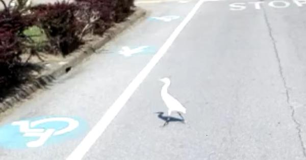 CREMONA - Una garzetta bianca ha preso possesso dell'area esterna dell'Ospedale maggiore di Cremona. Si è accasata tra le aiuole dell'ingresso principale, mangia le lucertole incurante del via vai di gente.