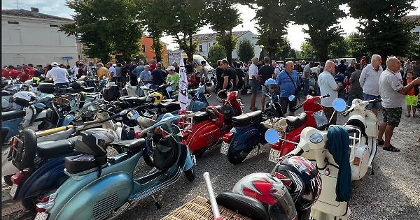 QUATTROCASE (CASALMAGGIORE) - Lo scorso anno furono oltre 200 i partecipanti al Vesparaduno di Quattrocase e quest’anno, per la decima edizione – ottavo memorial Federico Cuomo –, i numeri sono ulteriormente aumentati. Lo hanno riferito questa mattina, pochi minuti prima della partenza delle due ruote per il loro tour in quel di Viadana, le volontarie dell’associazione Emergenti addette al banco delle iscrizioni. Variegate le provenienze degli iscritti alla manifestazione, confluiti nella piazza a fianco della chiesa parrocchiale.