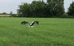 CREMONA - Due esemplari di cicogna sono stati avvistati sui fari del campo da volley che ospita l'Esperia questa sera nel quartiere Cascinetto di Cremona, vicino al Centro Arvedi.