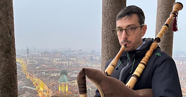 CREMA - Poco dopo le 16 di oggi, il segretario esecutivo del Club – l’avvocato Palmieri – è salito sul loggiato sommitale del campanile del Duomo, e con la sua cornamusa bergamasca (baghèt) ha interpretato alcune tra le più celebri melodie natalizie.